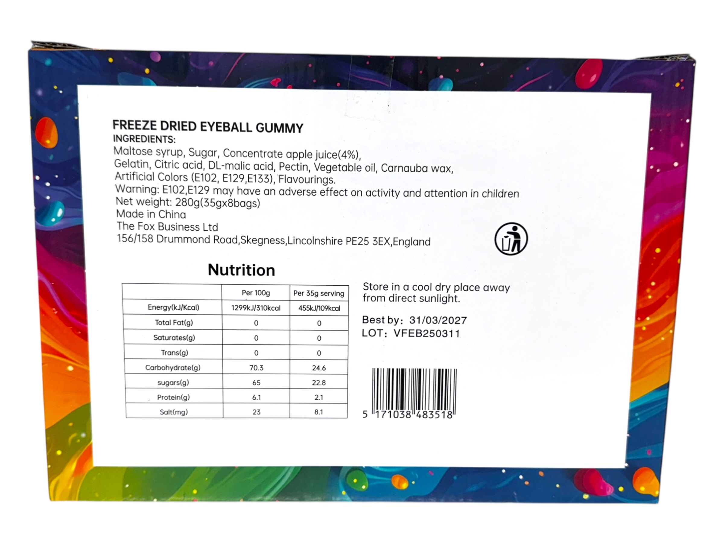 Our Freeze Dried Fruit Hard Candy is a vibrant, flavour-packed treat that combines the fun of colourful sweets with a modern crunchy twist. Whether you’re stocking up for your shop or treating yourself at home, these sweets are a must-have.