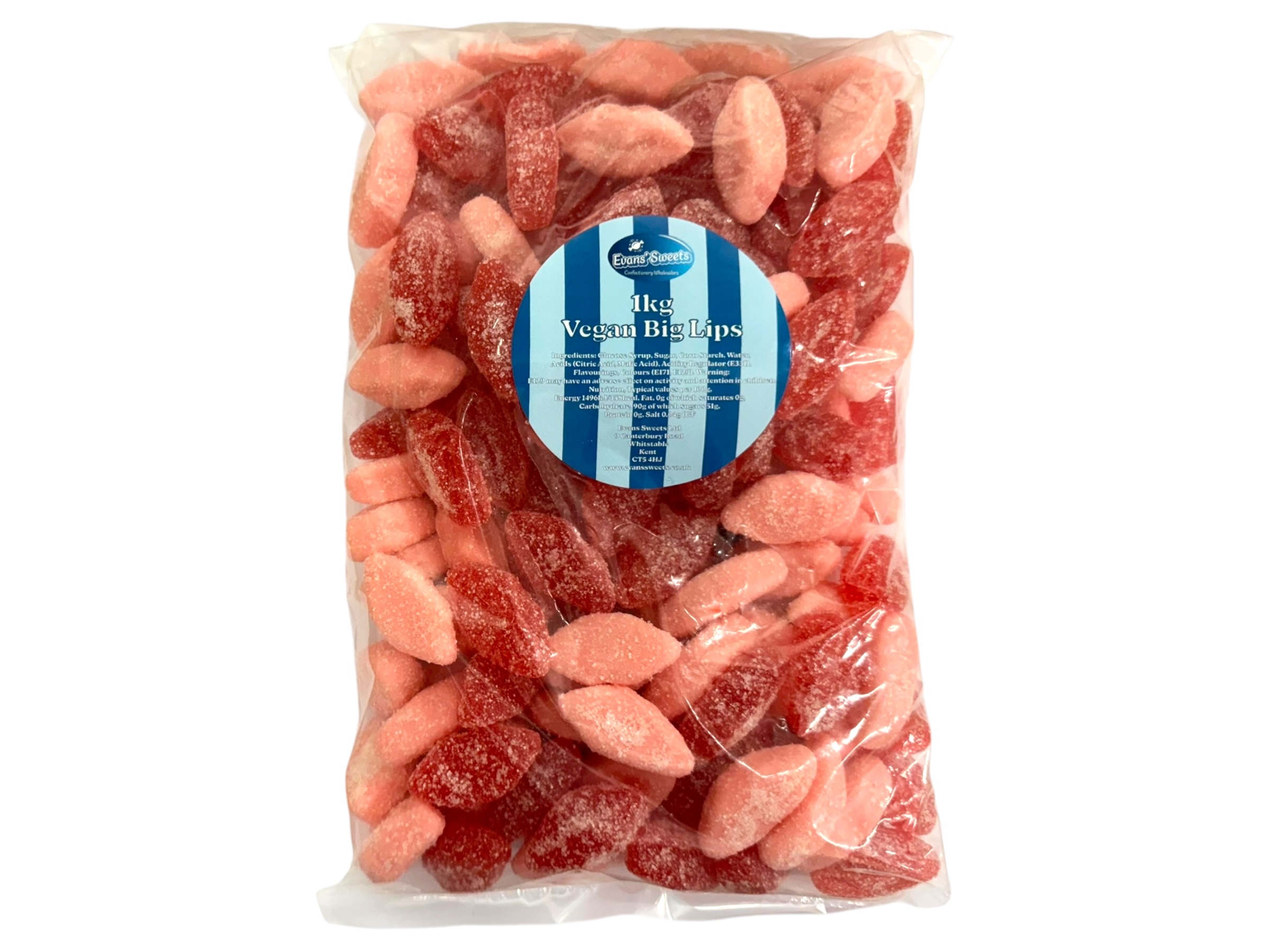 Pucker up for a playful treat with our 1kg Vegan Big Lips! These oversized gummy lips are cheeky, sweet, and irresistibly chewy – made with 100% vegan ingredients for guilt-free indulgence. Each fruity bite is bursting with bold flavour, perfect for parties, movie nights, or adding a bit of fun to your pick ’n’ mix.